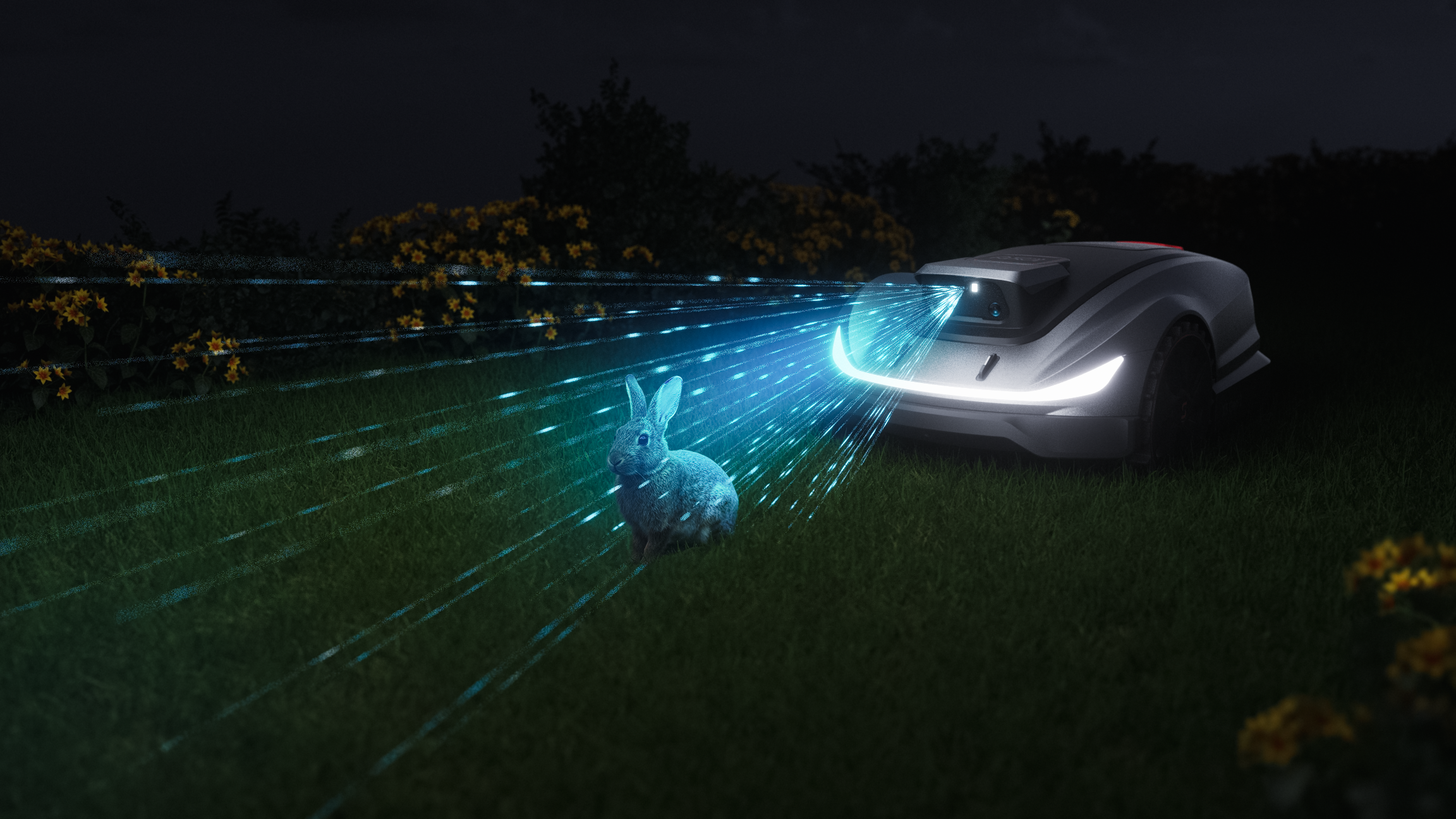 Zusätzlich ist der Mähroboter mit einer binokularen Kamera mit iTOF-Nachtsicht ausgestattet, die auch bei schlechten Lichtverhältnissen zuverlässig Hindernisse erkennt.