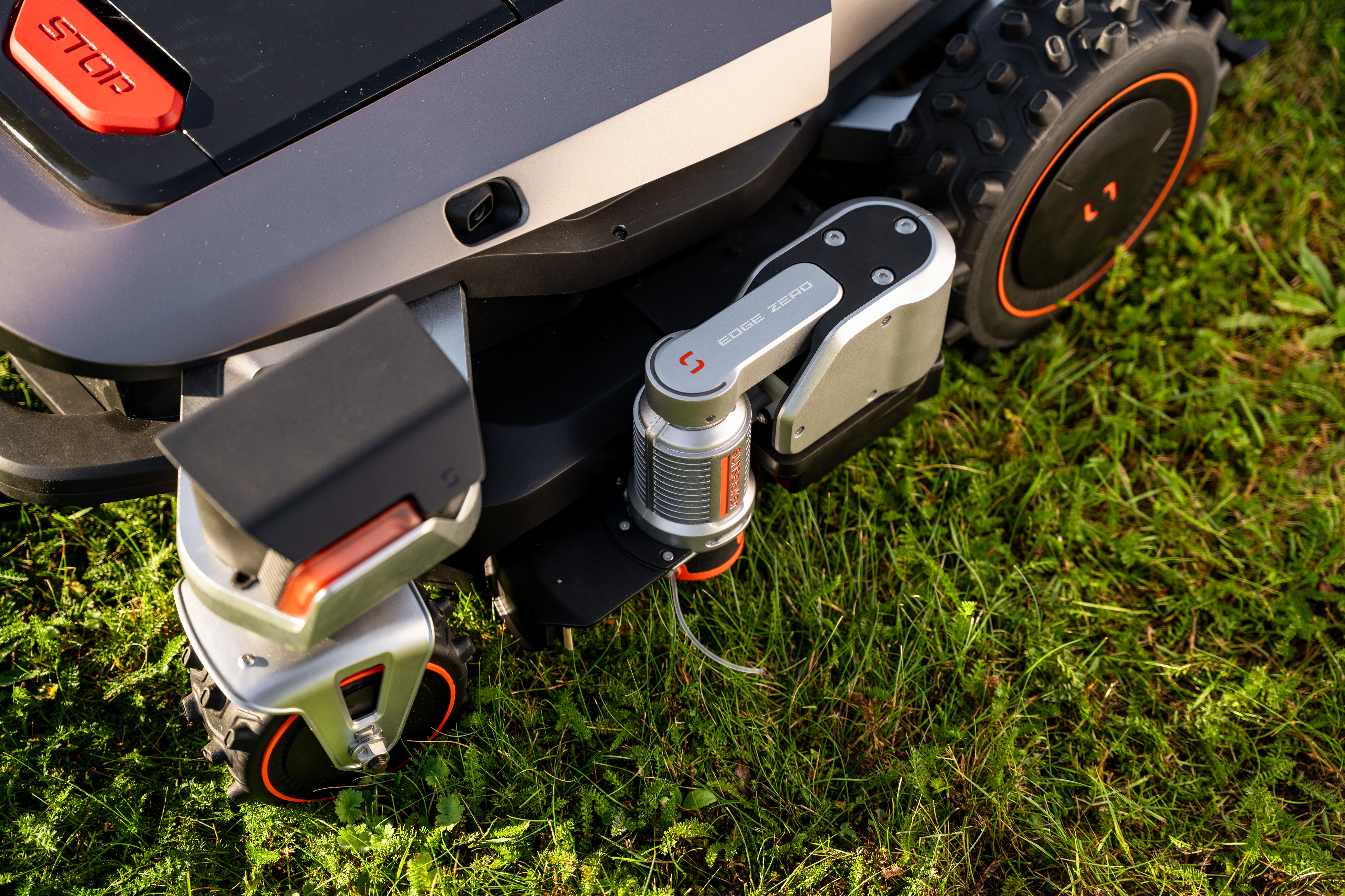 Mit dem EdgeZero Trimmmodul schneidet der X9 Plus bis direkt an Zäune, Mauern und Rasenkanten. Dadurch bleiben keine ungemähten Randbereiche zurück und Nacharbeiten werden deutlich reduziert.