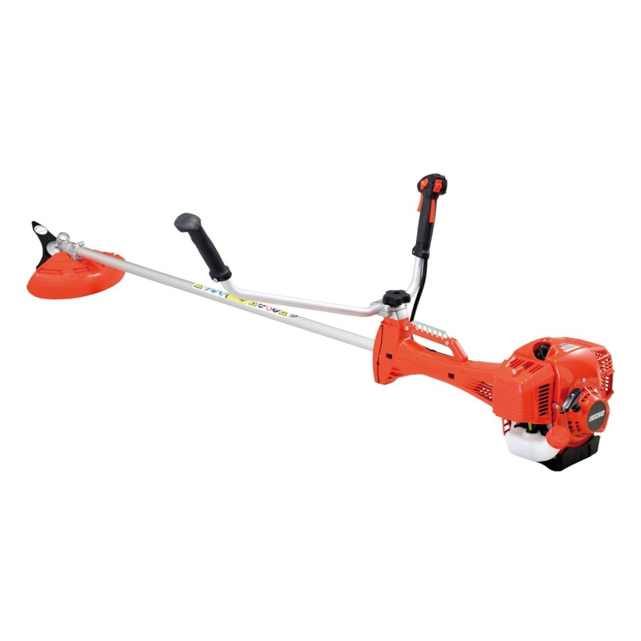 - drehbarer Mutifunktionsgriff: ECHO-Motorsensen sind mit ergonomisch gestalteten Griffen ausgerüstet. Die Hände müssen während der Arbeit nicht von den Griffen genommen werden um Steuerfunktionen zu bedienen. Für den Transport kann der Griff platzsparend über den Antriebsstrang gedreht werden.